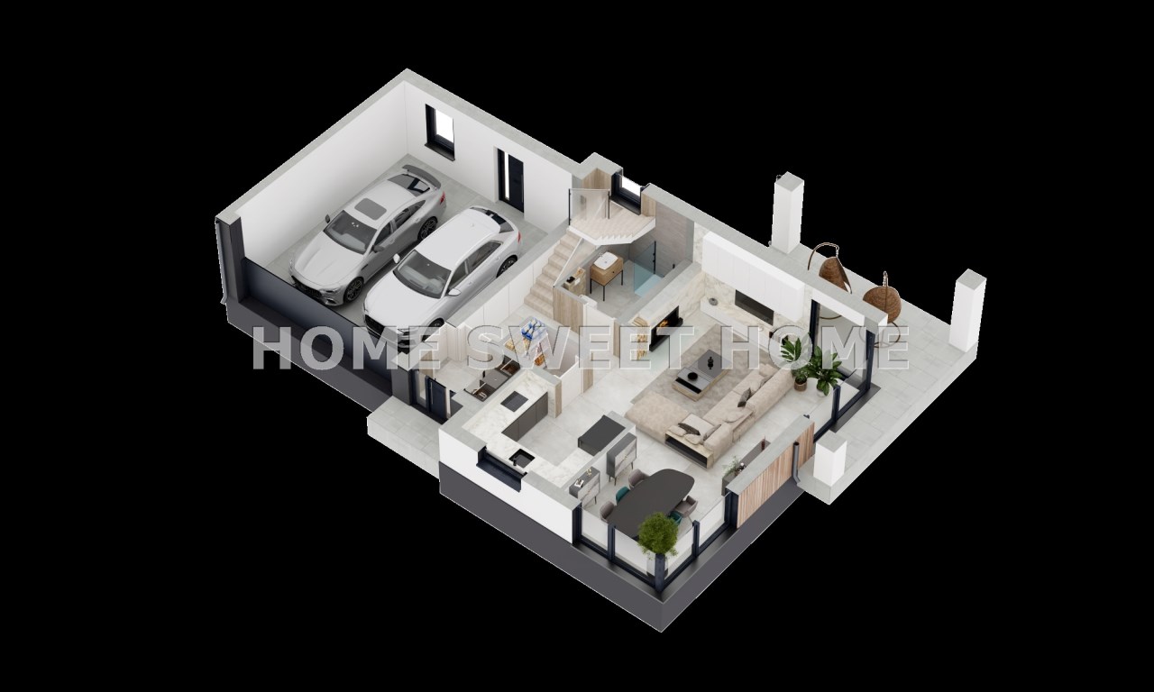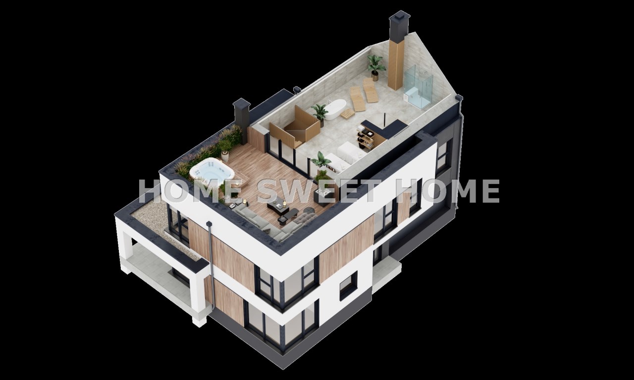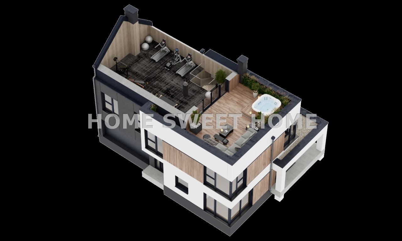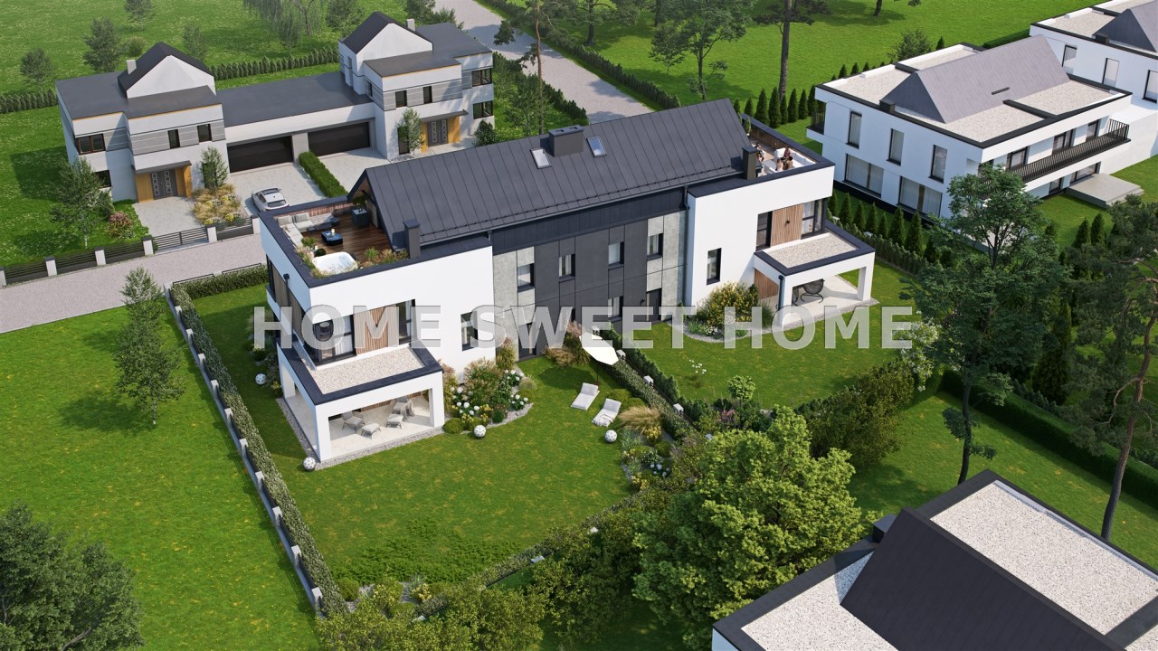 Domy o lustrzanym odbiciu, każdy z domów to ok. 250 m² starannie zaprojektowanej powierzchni, w tym poddasze użytkowe z potencjałem aranżacyjnym dopasowanym do indywidualnych potrzeb.