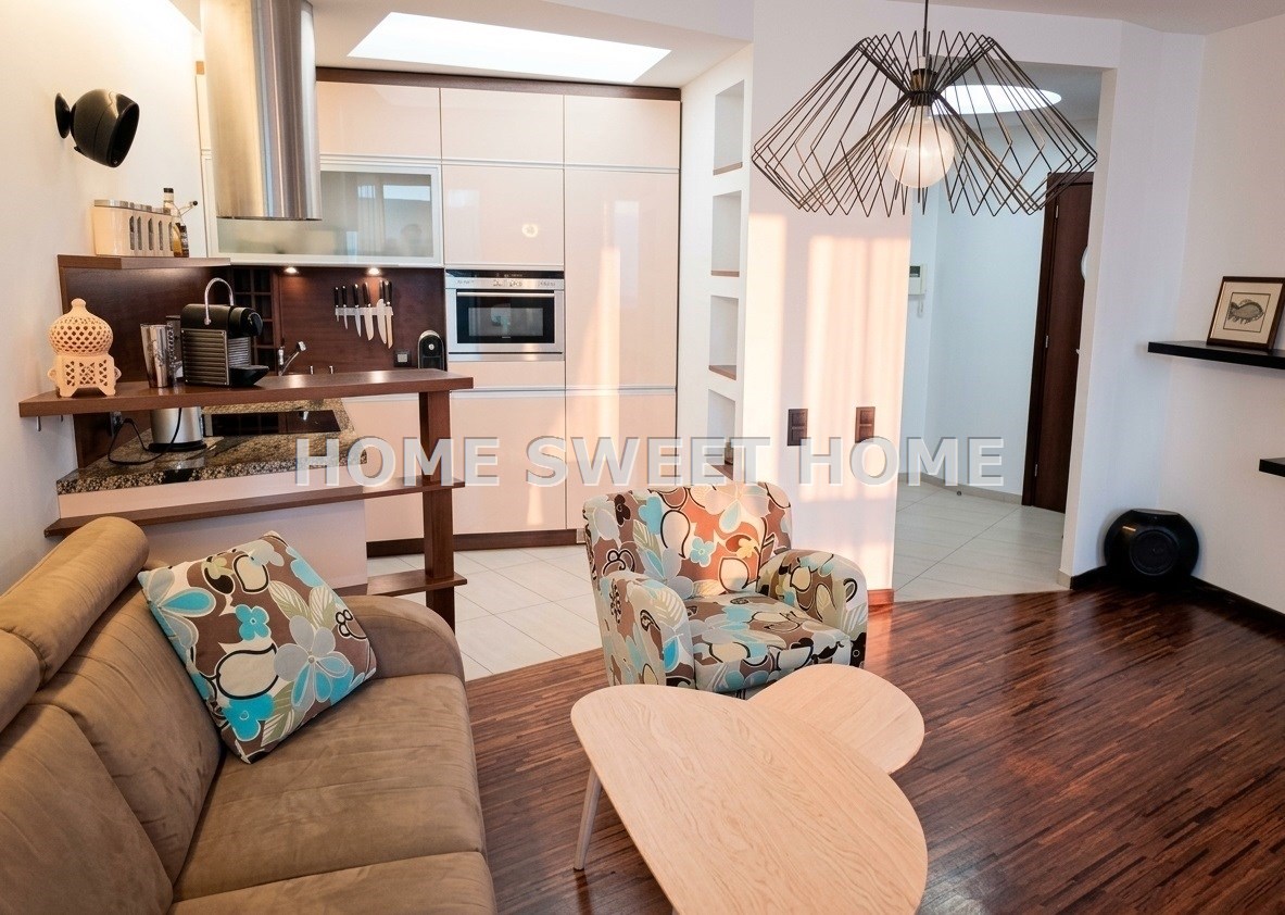 Mieszkanie obecnie dwupokojowe, natomiast pierwotnie projektowane było jako trzypokojowe. Wykończone z wysokiej jakości materiałów, mebli oraz sprzętu AGD RTV. Do mieszkania przynależy miejsce postojowe, obligatoryjnie, w cenie 45 000 zł.