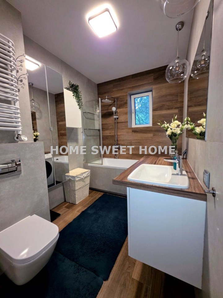 Parkiet jesionowy, dużo szaf. Instalacje: wodna, kanalizacyjna, elektryczna, ogrzewanie gazowe, alarm w mieszkaniu i kamera na zewnątrz - widok na ogród. Budynek z 2002 roku, w bardzo dobrym stanie technicznym.