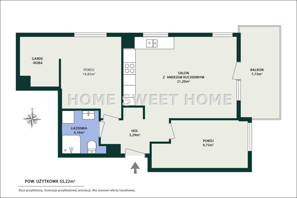 | Powierzchnia użytkowa [m2] | 55,22 m² |