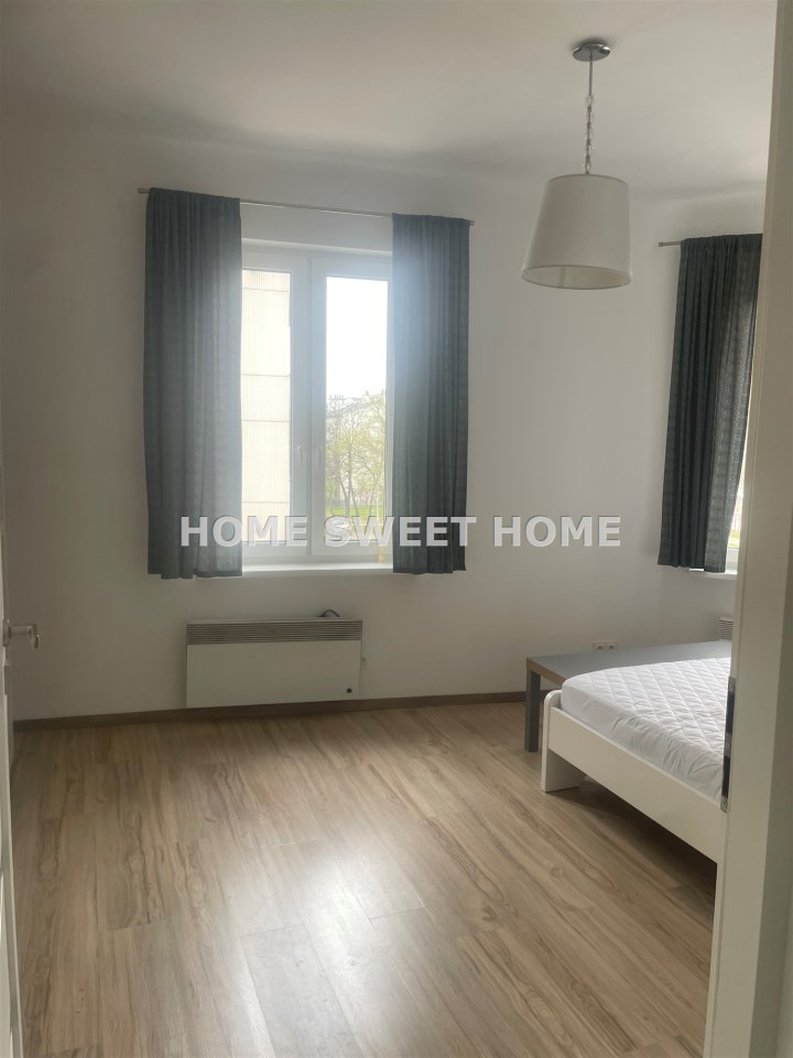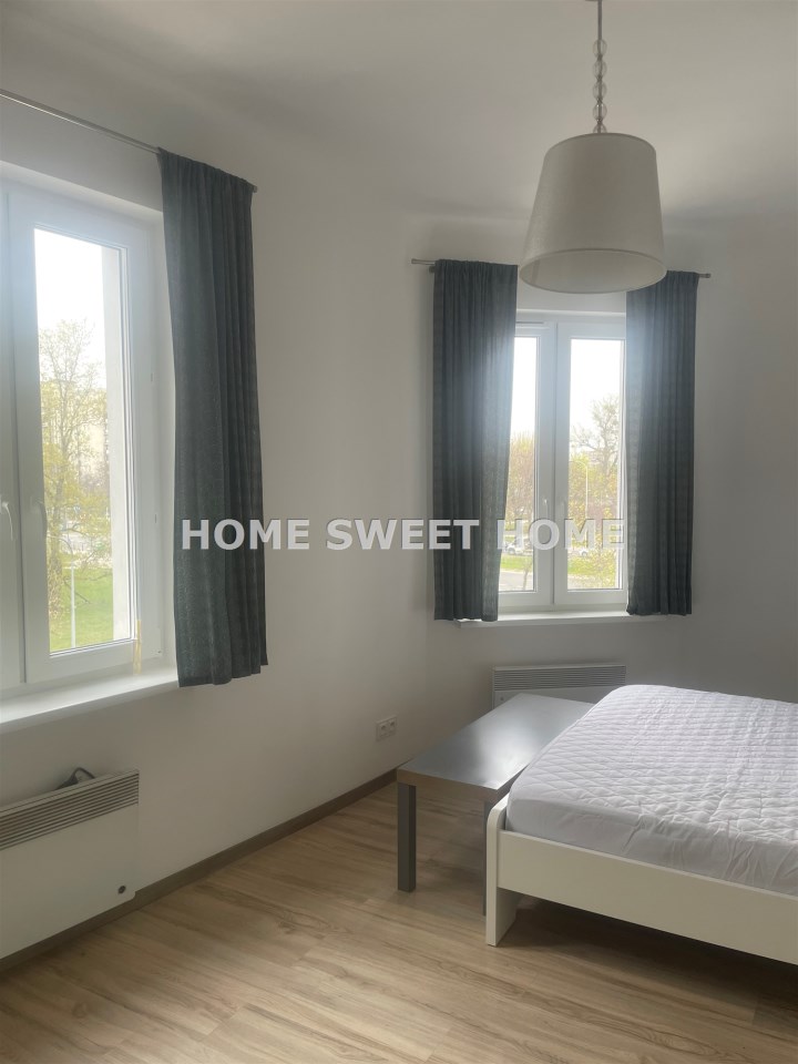 Duża sypialnia z dwoma oknami i salon z aneksem kuchennym.