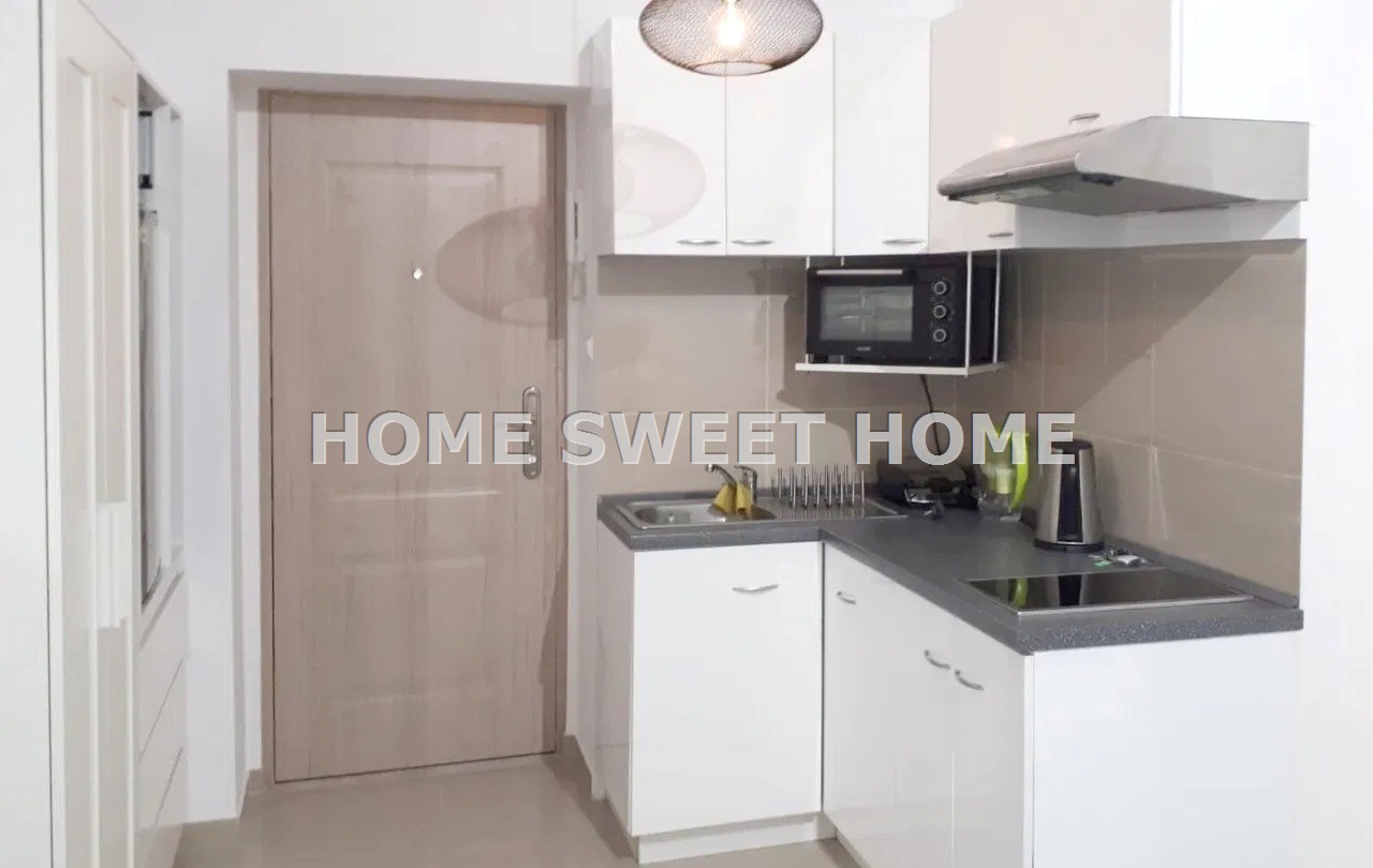 Mieszkanie jest jednopokojowe, ciche i zadbane. Ekspozycja na wschód oraz widok z okna na jasną, zadbaną kamienicę umożliwiają bardzo dobre doświetlenie mieszkania przez cały rok. Aneks kuchenny wyposażony jest m.in. w lodówkę, płytę elektryczną, zlew, mikrofalę oraz piekarnik.