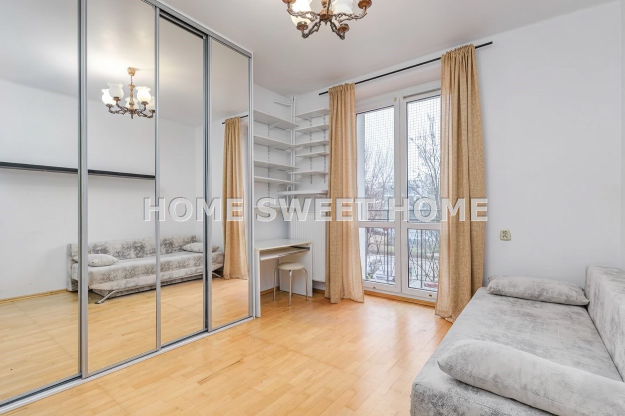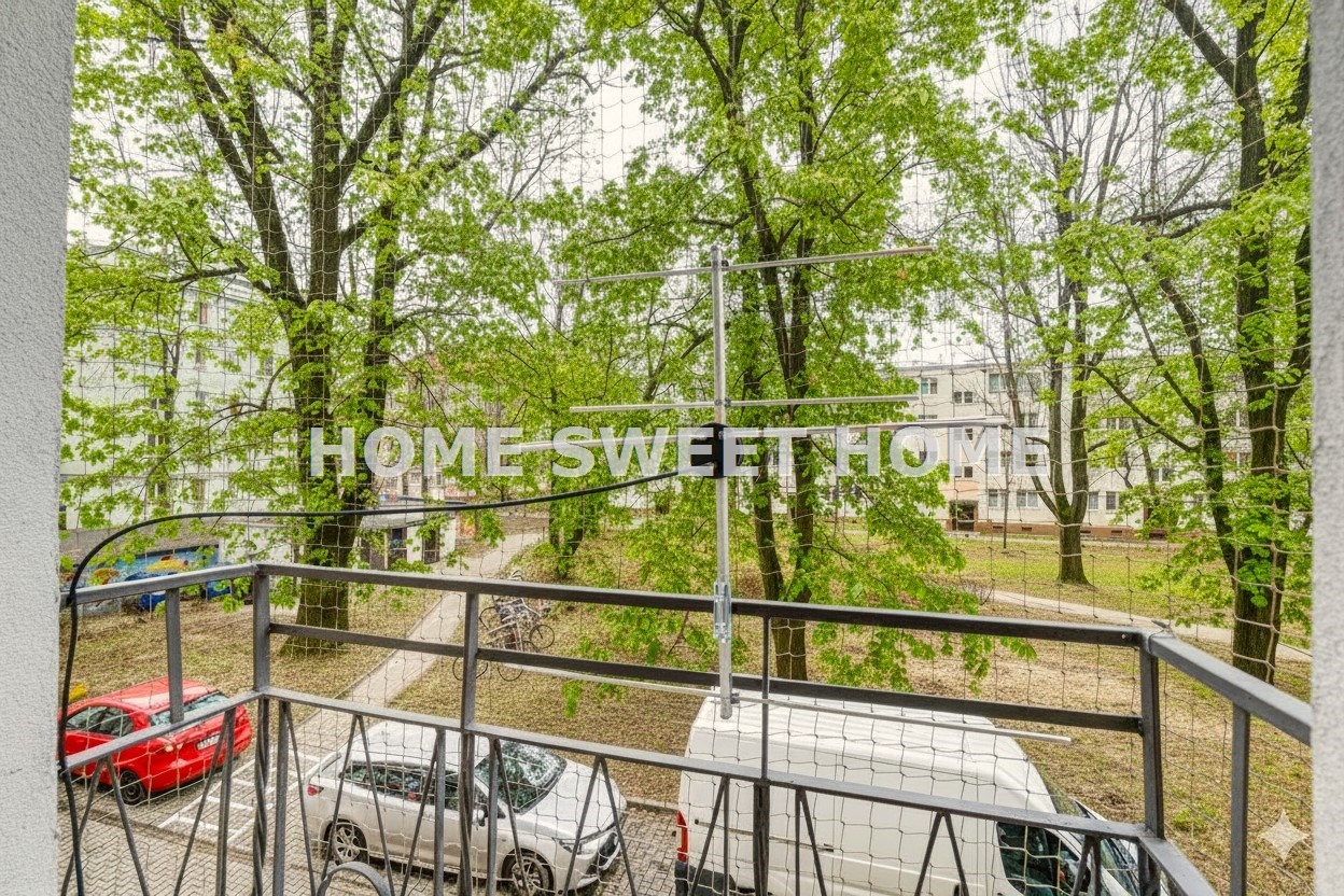 Salon z balkonem wychodzi na podwórze i jest skierowane na południe. Po drugiej stronie znajduje sie kuchnia oraz sypialnia również z balkonem skierowana na nowe osiedla.