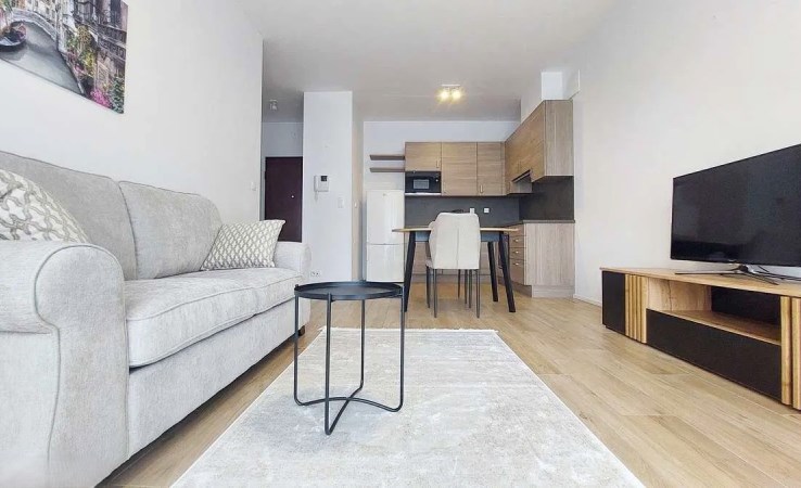 Mieszkanie klimatyzowane, zlokalizowane na trzecim piętrze. Składa się z salonu z aneksem kuchennym, sypialni, łazienki i przedpokoju. Wszystkie okna wychodzą na podwórko, co gwarantuje ciszę. Balkon ma powierzchnię 5,79 m2.