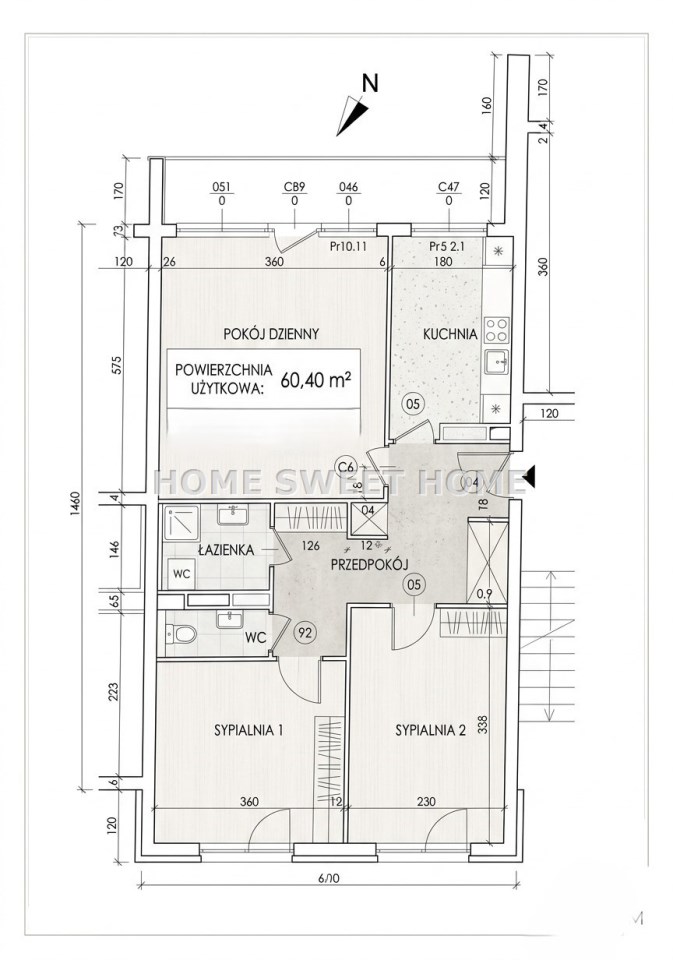 | Powierzchnia użytkowa [m2] | 60,40 m² |