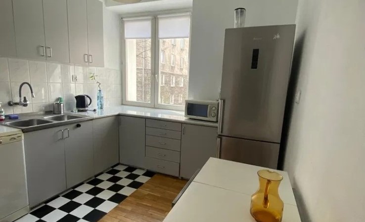 Mieszkanie dwustronne, składa się z dwóch pokoi, kuchni, łazienki i przedpokoju.