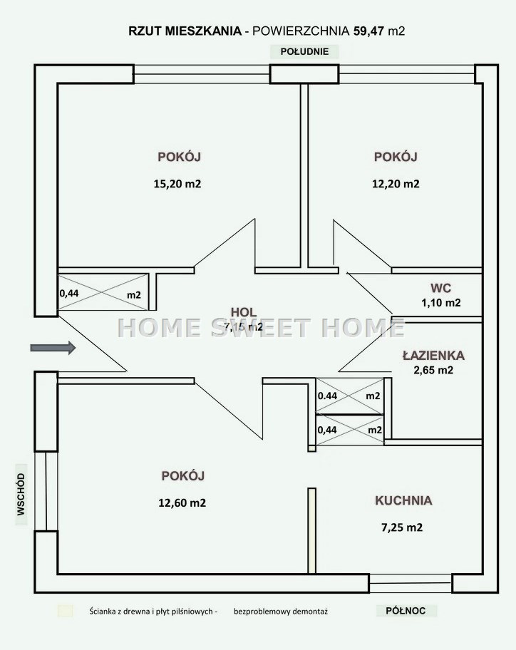 | Powierzchnia użytkowa [m2] | 59,50 m² |