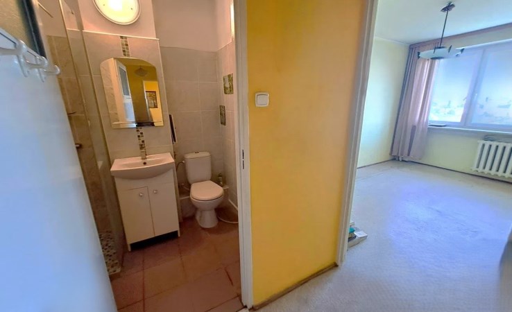 Mieszkanie kwalifikuje się do remontu. Na posadzce mozaika drewniana w dobrym stanie, nadająca się do wycyklinowania..