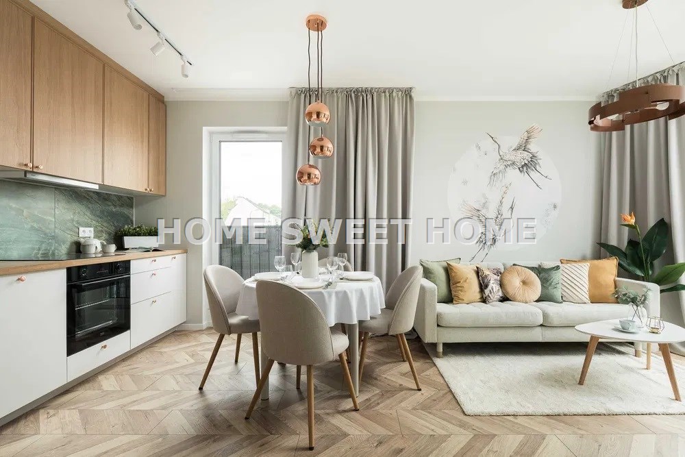 Funkcjonalny układ i nowoczesne wnętrza. Wyodrębniono podział na strefę: dzienną z aneksem kuchennym, sypialnię, pokój dla dziecka lub na gabinet i łazienkę. Zaaranżowano bardzo dużo pojemnych szaf. Zabudowana loggia to aż 7 dodatkowych metrów - komfortowa przestrzeń z wyjściem z każdego pokoju. Może pełnić funkcję zimowego ogrodu, strefy relaksu lub bezpiecznego kącika zabaw dla dziecka.